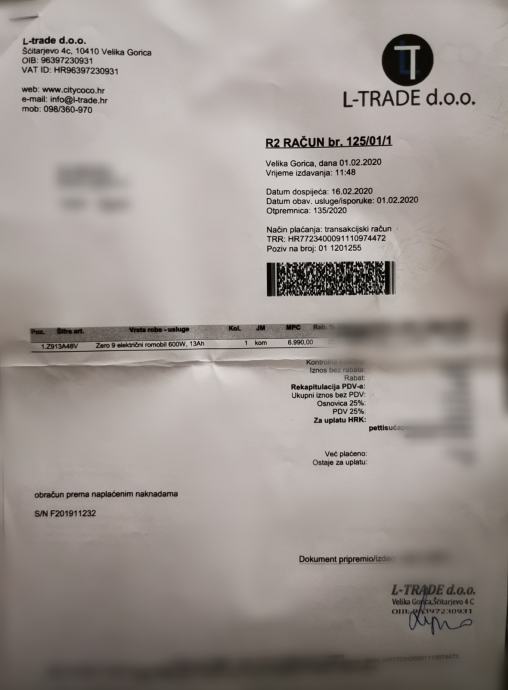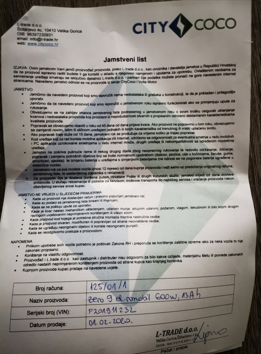 Prodajem Zero 9 električni romobil kupljen u CityCoco. Posjedujem račun, kutiju, upute.