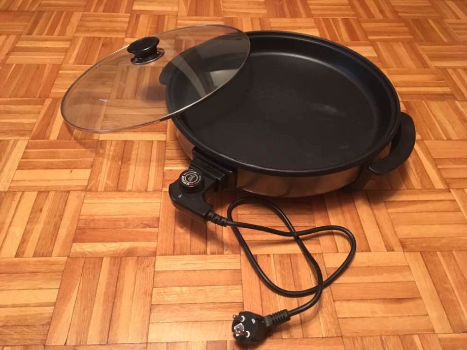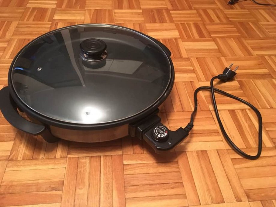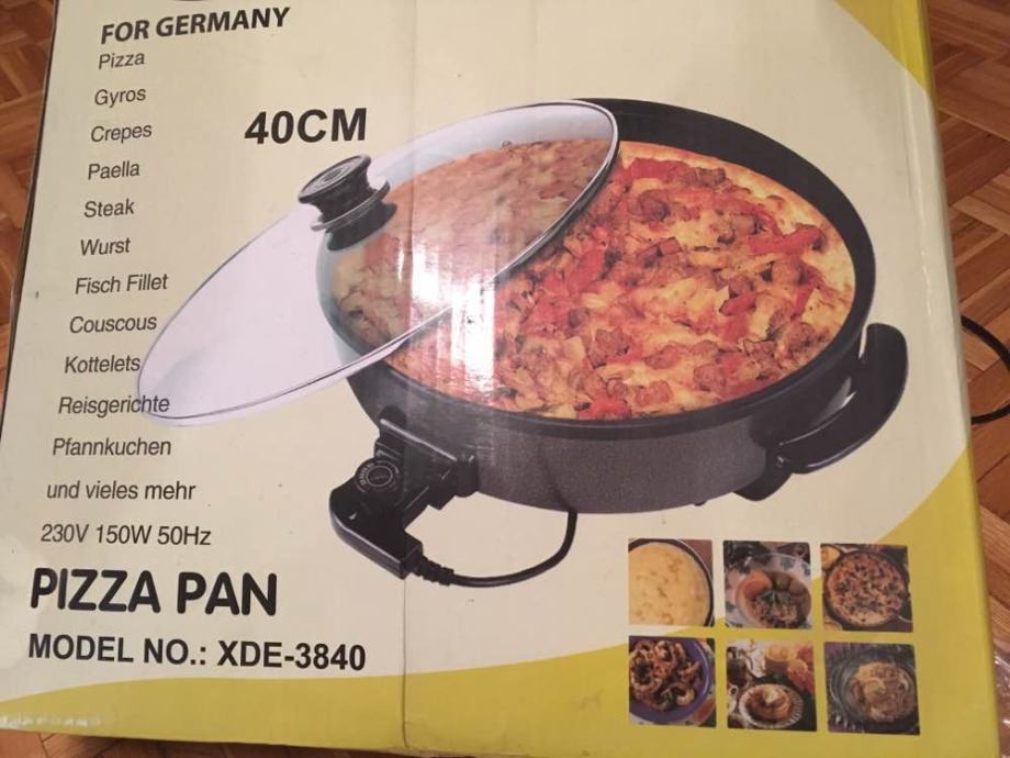 Prodaje se novi elektricni multifunkcionalni pekac tava za pizzu i pecenje. Teflonska tava protiv ljepljenja, snage 150W sa promjenjivim termostatom, promjera 36cm i dubine 3,5cm sa prozirnim staklenim poklopcem za kontrolu pecenja. Pekac je uscuvan i u funkciji, sadrzi i upute za koristenje. Mogucnost dostave unutar grada Zageba prema dogovoru.