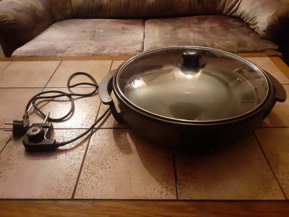 Prodajem električni pizza pekač (pizza pfanne), koji se isto tako može koristiti i kao električni roštilj. U vrlo dobrom je stanju, uz naravno vidljive tragove korištenja. Vanjski promjer pekača je 40 cm, dok je unutarnji 36 cm. Dolazi u kompletu sa staklenim poklopcem, te originalnim punjačem. Svi podaci i sve specifikacije o uređaju vidljivi su na zadnjoj slici.