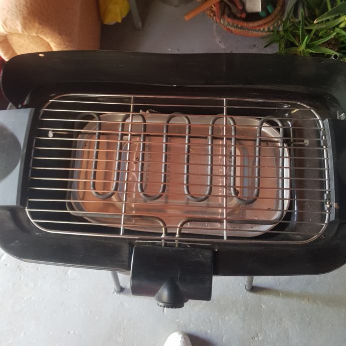 Prodajem novi nerabljeni el.roštilj dobiven na poklon ali mi nije potreban . Ima nosače, nogice, a može se i skinuti te upotrijebiti i u zatvorenom prostoru.