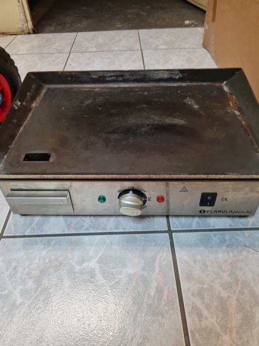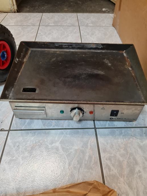 Flamula električni roštilj snage 2 kW. Korišten 2-3 puta, kupljen u Bauhausu prije 3-4 godine. Ispravan i bez oštećenja, odličan za gablece/marende, razna tostiranja i roštiljanje lakših komada mesa i povrća.