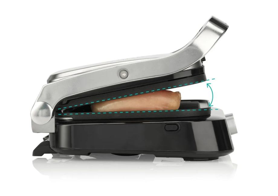Smart Grill vam omogućuje pečenje sa zatvorenim ili potpuno otvorenim poklopcem, što povećava vašu površinu za pečenje. Možete pripremiti više hrane ili vrstu hrane kojoj su potrebne niže temperature da bi bila fino pečena. Doživite pravo iskustvo na otvorenom!