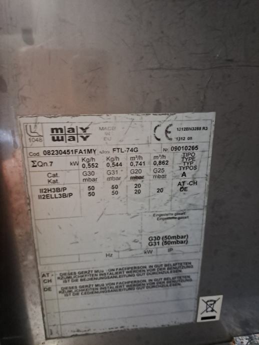 Zaradi neuporabe se prodaja plinski žar, kateri je bil uporabljen cca 10×, za profesionalno rabo za gostinske dejavnosti, kupljen je bil cca 5 let nazaj, kupljen nov v Avstriji (firma MayWAY), nov je stal 3000 EUR.