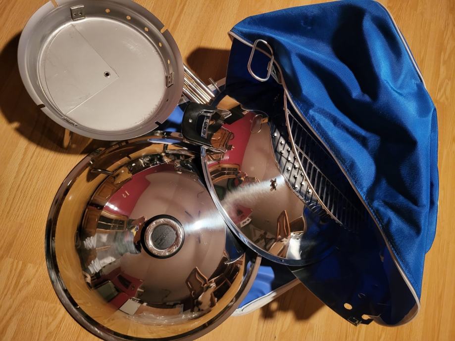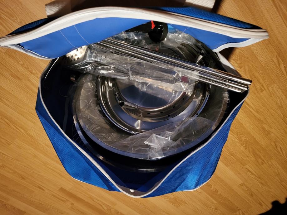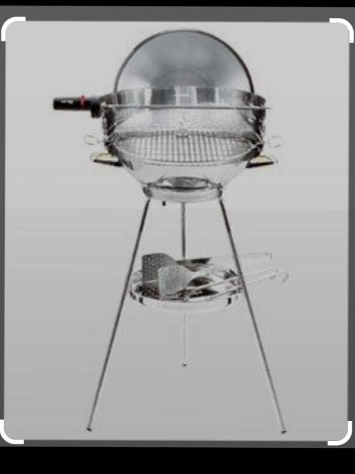 Rostilj je na ugljen s velikom resetkom i okretnim raznjem.