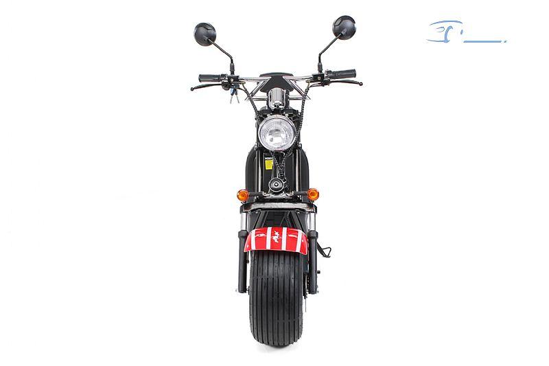 Još jedna posebna značajka eFlux Chopper Two su gume. Jer e-skuter ima široke gume bez zračnica. S dimenzijama od 225/55 i 8 inča ne samo da pridonosite većoj udobnosti vožnje, već osiguravate i veću sigurnost. Sa svojim sportskim terenskim izgledom osiguravate sigurno držanje trake i kočenje, čak i na mokrim cestama i zimi. Naravno, gume su prilagođene ponašanju u vožnji i kočenju e-skutera. Na taj način dobivate kompletan paket e-mobilnosti: elektronički, praktičan, dobar.