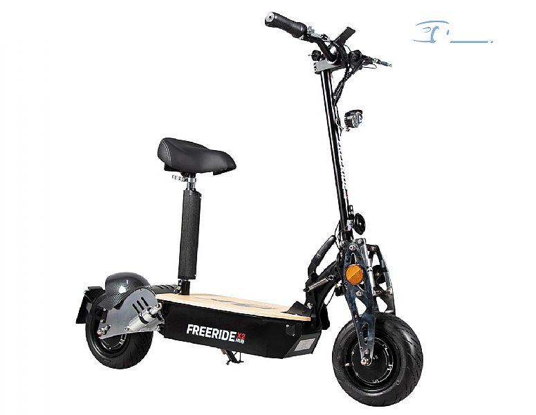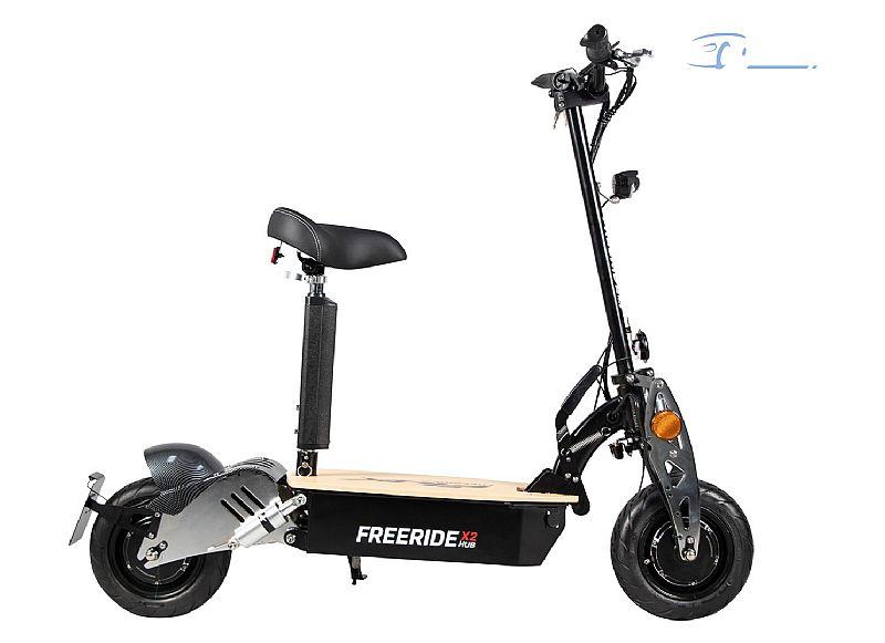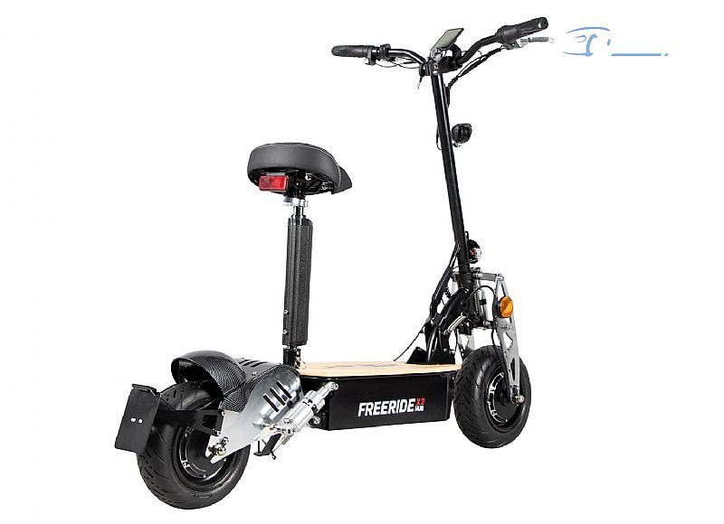 Postavite dinamični električni skuter sa sjedalom – idemo! 1000 W snage motora sprijeda, dodatnih 1500 W za snažno ubrzanje na stražnjoj osovini: s električnim skuterom eFlux Freeride X2 kupujete dinamičnu elektranu. S dva motora u glavčini koji ne zahtijevaju održavanje i ukupnom snagom od 2500 W, možete uživati u visokim performansama koje postavljaju standarde za električni skuter. Od 0 do 45 km/h: Nakon kratke faze ubrzanja, dosegnut ćete maksimalnu brzinu kojom možete brzo postići svoje ciljeve u gradu. Imate mogućnost smanjenja snage motora u tri stupnja. Velike gume (6 inča) s profilom ceste osiguravaju optimalno prianjanje.