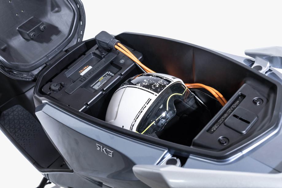 Ispod sjedala se nalazi veliki pretinac za pohranu koji može prihvatiti kacigu, ruksak ili dnevne potrepštine a time rješava probleme na svakodnevnim putovanjima. Nosivost električnog skutera na ravnoj cesti je do 150kg, a masa samog skutera je oko 85kg.