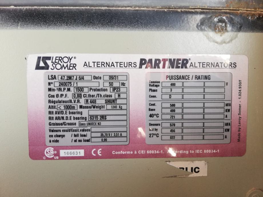 Dajem u najam agregat Atlas Copco 500 kVa u odličnom stanju sa pogonskim motorom Volvo 1641 Common Rail. Agregat je dobar sa malom potrošnjom goriva. Spreman za rad. Uz agregat možemo poslati i ATS ormar 650 A koji omogućuje rad mreže a po potrebi da se agregat sam pali a povratom mreže prebacuje natrag na istu. Agregat se sam sinkronizira sa mrežom. Podržava i američki sustav 440V 60 HZ. Mogućnost našeg spajanja i nadzora. Usluge najma uz pouzdanost, korektnost, točnost i fleksibilnost.