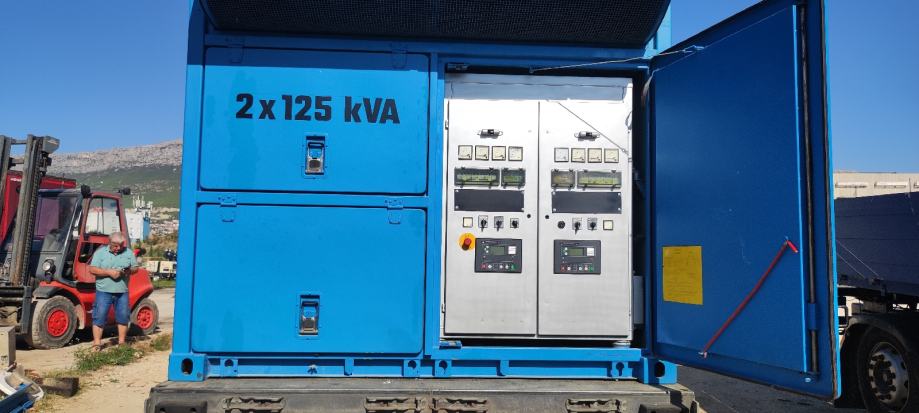U kontejneru su smještena dva neovisna agregata od 125 kVA koji mogu raditi u paraleli tako da proizvode 250 kVA ili 125 kVA s jednim agregatom u stand-by operaciji koji može preuzeti teret u slučaju da na drugom agregatu dođe do kvara.