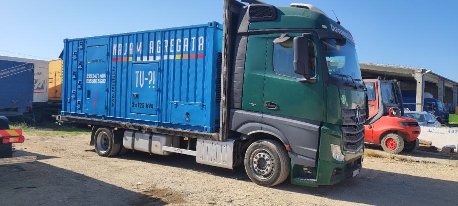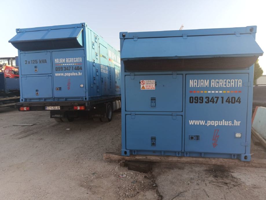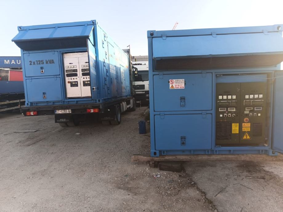 Posjedujemo dva identična kontejnera koji se mogu međusobno sinkronizirati te proizvoditi sveukupno 500 kVA.Uz dva Volvo kamiona s BDF šasijom smo u mogućnosti obaviti dostavu u svakom trenutku. Našim pristupom, pouzdanim i provjerenim agregatima te kvalitetnom uslugom izdvajamo se od konkurencije.