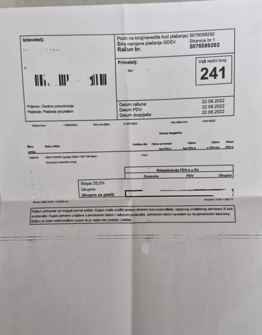Moguća dostava ZG (zapad) ili na relaciji ZG-KA-ZD.