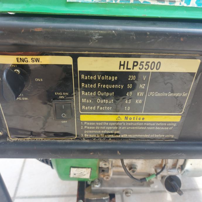 Snaga stvarnih 4,3kw maksimalno a trajno 4kw, motor 13 konja klon Honde Gx390. Navedeni podaci snage su točni što naravno možete isprobati jer u današnje vrijeme na žalost i na puno manje agregate lijepe naljepnice sa velikim lažnim snagama.