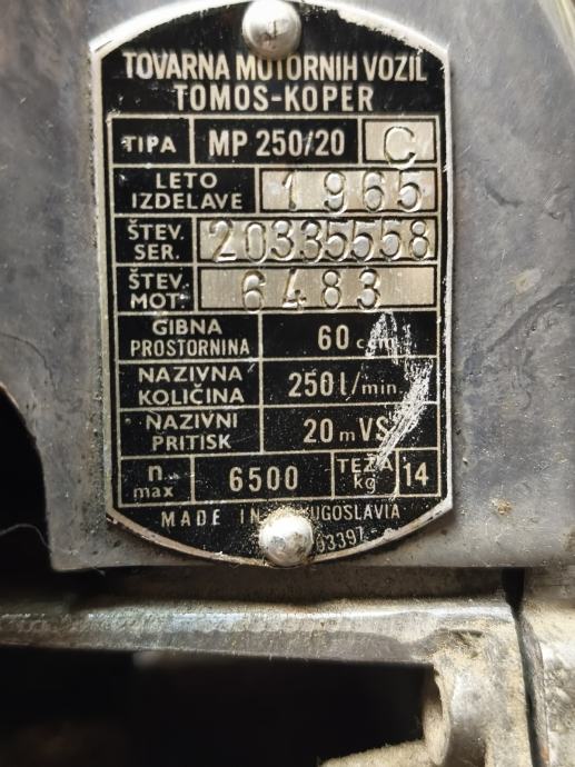 Mašina od Tomos vodene pumpe 60 ccm i 6000 okretaja.
