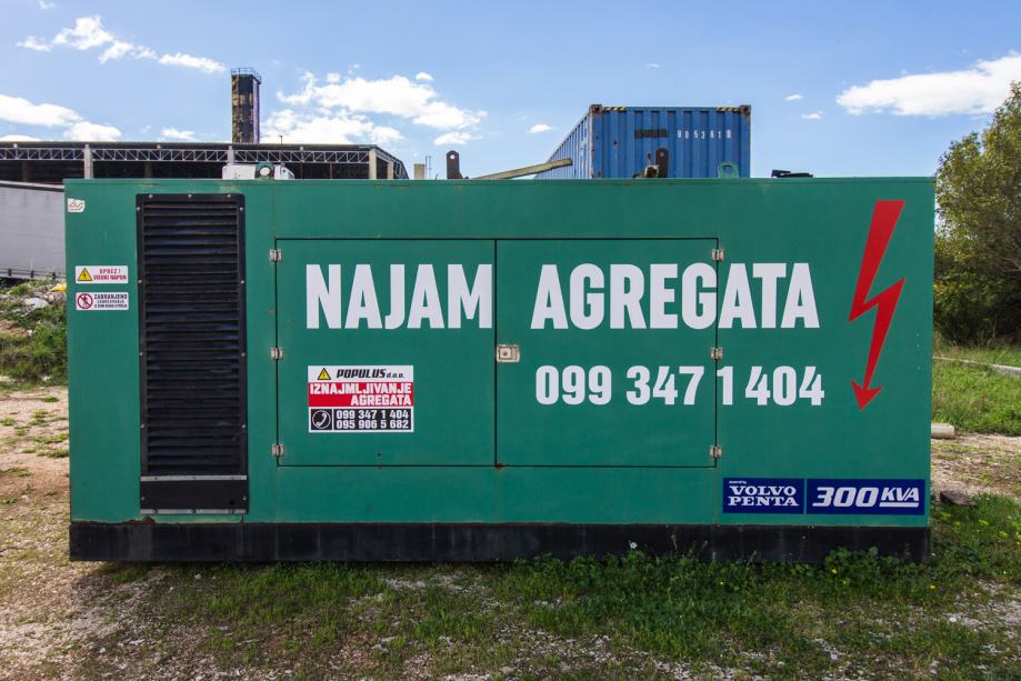 Agregat Volvo 300 kVa iznajmljujem ili prodajem. Mogućnost najma uz otkup.Spremni smo i u mogućnosti izvršiti svaki vaš realni zahtjev, transport, montažu, spajanje, preinake, za dogovor oko konfiguracije ili cijene nazovite nas.