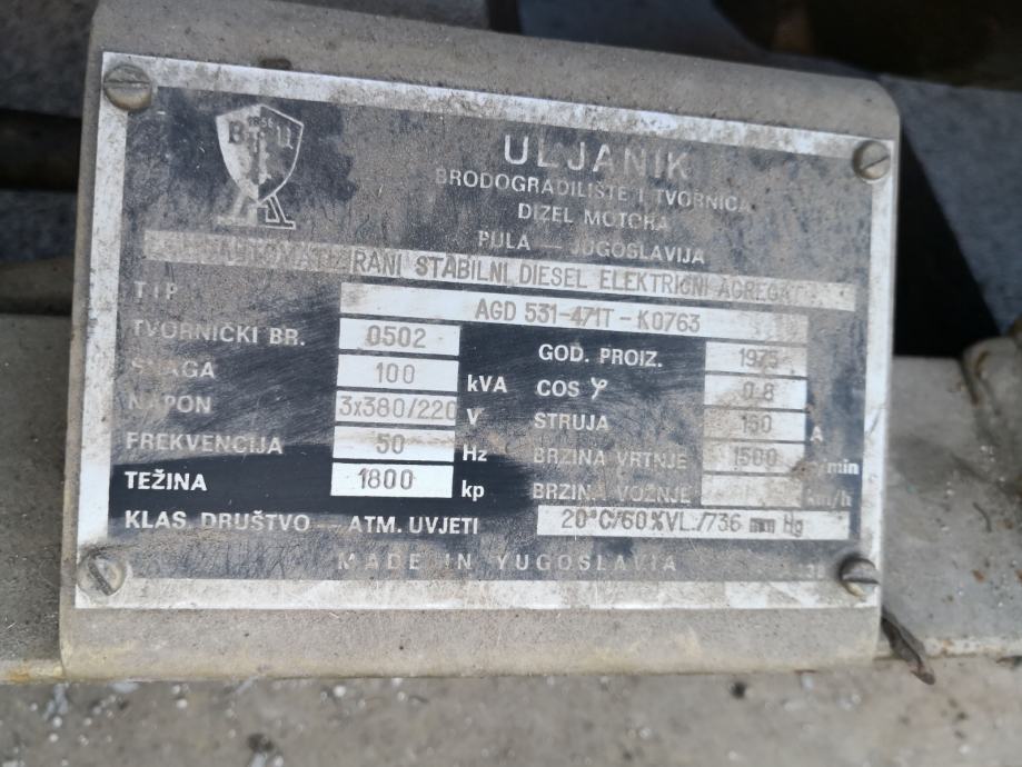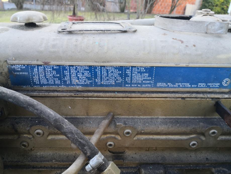 Prodajem Dizel električni agregat 100kVA 80kW Uljanik sa motorom Detroit Diesel 1975. godište, sa neispravnom turbinom.