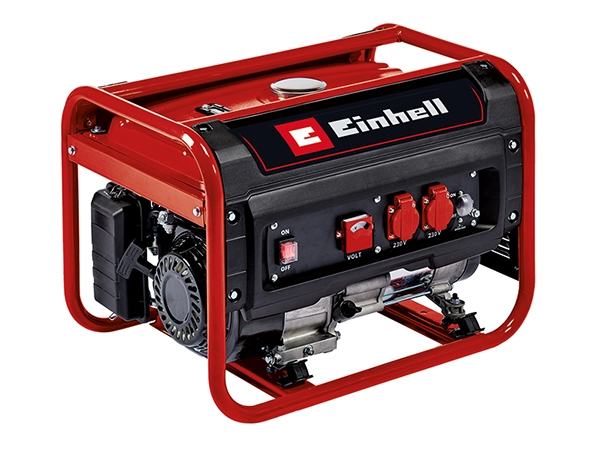Einhell benzinski agregat za struju TC-PG 25/1/E5 stvara kontinuiranu snagu od 2100 W i maksimalnu snagu od 2400 W zahvaljujući svom snažnom, robusnom i čistom 4-taktnom pogonskom motoru. Sukladnost s propisima o emisijama 5 osigurava da četverotaktni benzinski motor s zračnim hlađenjem ima niske emisije u radu. Za prijenos električne energije na terminalne uređaje ima dvije utičnice od 230 V, uključujući voltmetar koji pokazuje napon. AVR funkcija (sustav automatskog upravljanja naponom) osigurava stabilnu izlaznu snagu. Veliki spremnik od 15 litara ima praktičan pokazivač razine napunjenosti za kontinuirani rad. Za dugotrajnu uporabu oprema ima prekidač za preopterećenje i isključenje kod niske razine ulja.