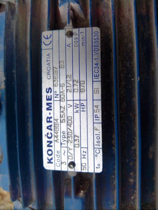Prodajem trofazni elektromotor 0.37kw,870 n1/min.Cijena 70 €
