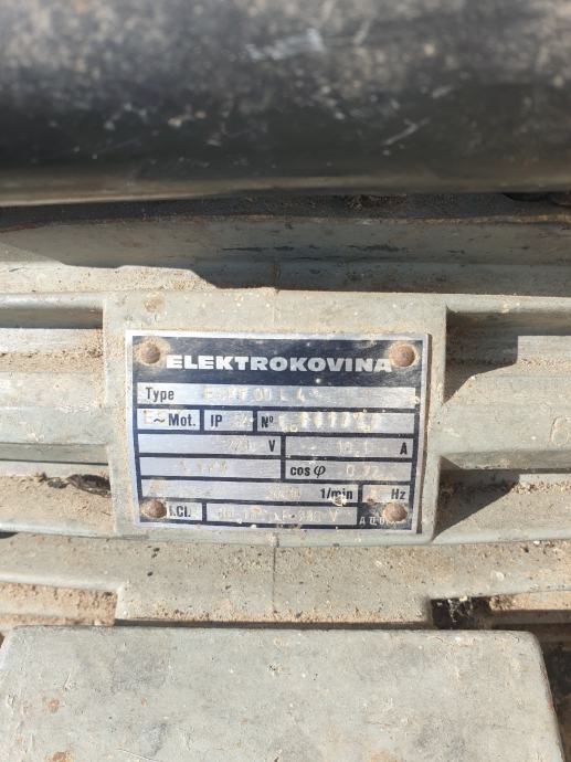Elektromotor monofazni "Elektrokovina", 1.1 kW, 1430 okretaja, motor ima bimetalnu zaštitu od pregrijavanja, grebenastu sklopku 0-1 i priključni kabel