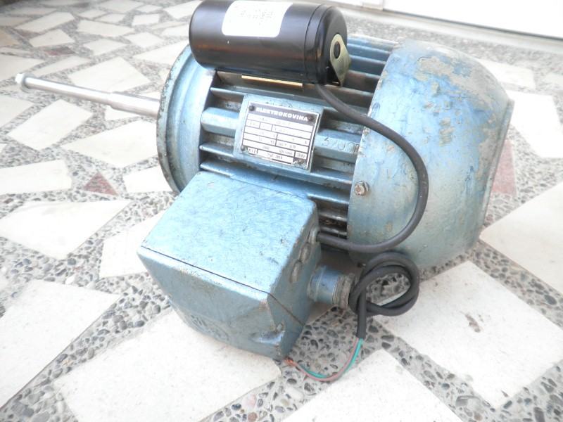 Ispravan JEDNOFAZNI elektromotor marke ELEKTROKOVINA, sa dugačkom osovinom pogodnom za brusilice ili tračne pile i sa novim kondezatorom ... snage 1,5 ks , napon 220 V i 2880 okretaja , osovina dužine 280 mm .