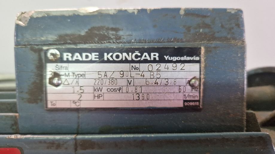 Prodajem elektromotor, 1,5 kw, 1400 o/min, ispravan