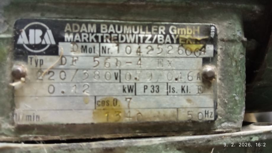 Prodajem manji trofazni elektromotor 120 W, 1340 o/min, njemački.