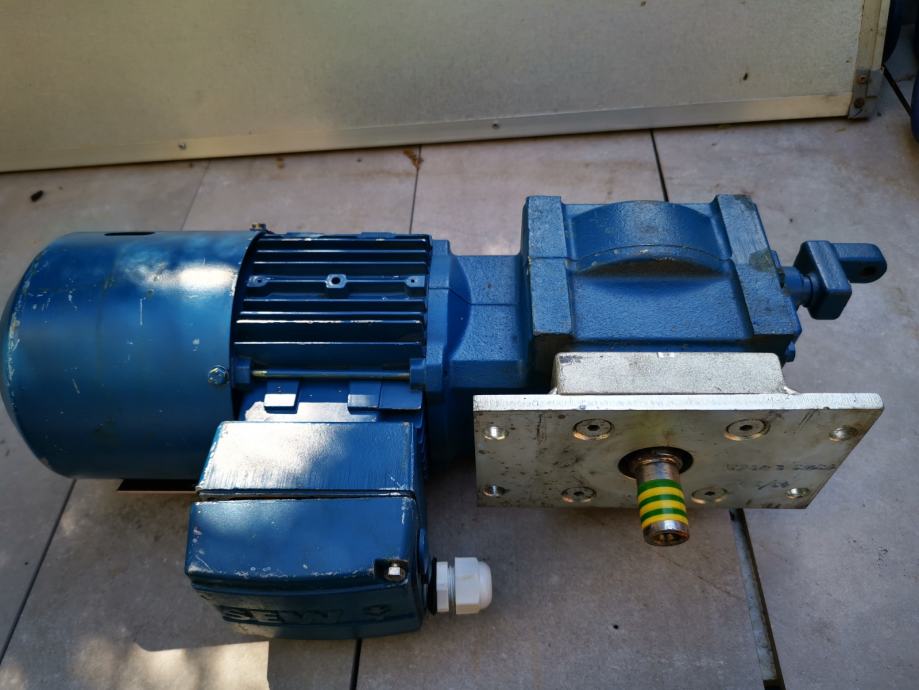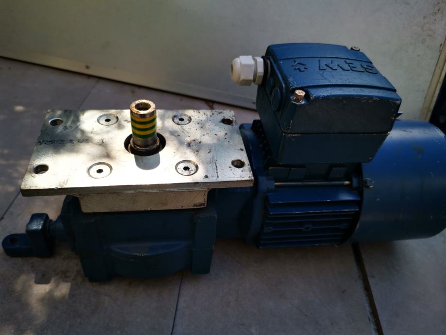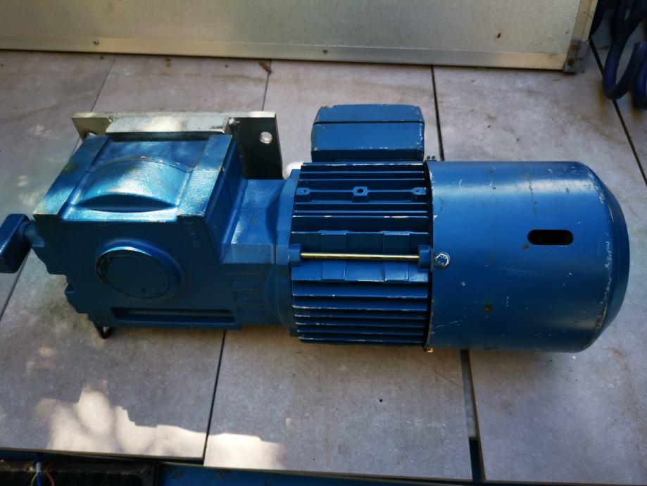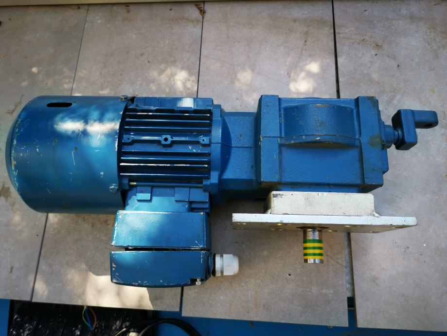 Prodajem elektrimotor sa kutnim reduktorom i nosačem, 0.37kW, 35 okretaja u minuti, fi osovine 20mm.