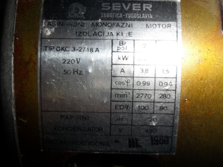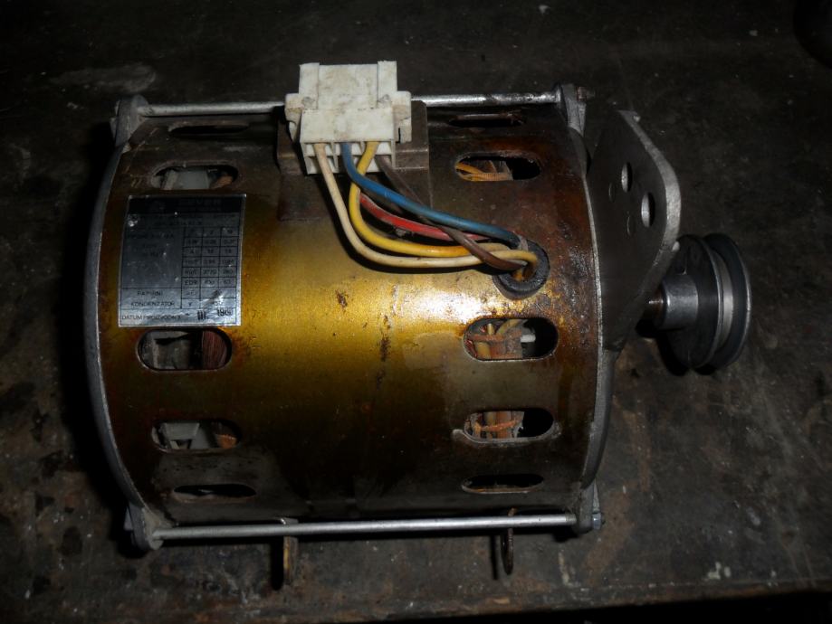 servisiran, ispravan elektromotor od starije vešmašine sa odgovarajućim kondenzatorom i remenicom