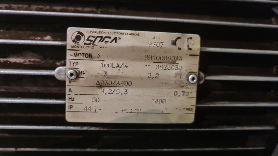 Trofazni elektromotor Soga Talijanski, 2.2kw, 1400 o/min. Motor je potpuno ispravan, kao nov.