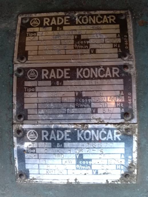 Elektromotor trofazni "Rade Končar" , 15 kw , 940 o/min , zvijezda-trokut , duga osovina , prodajem za 1050 eura . Mob 091 1963 641