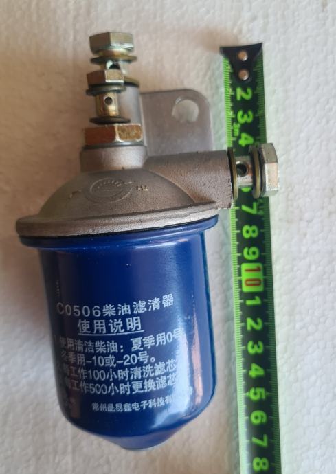 Prodajem novi filter goriva za diesel motore, model C0506. Filter dolazi s nosačem za montažu i svim potrebnim priključcima. Konstruiran je za diesel gorivo i pogodan za uporabu na različitim strojevima i agregatima.