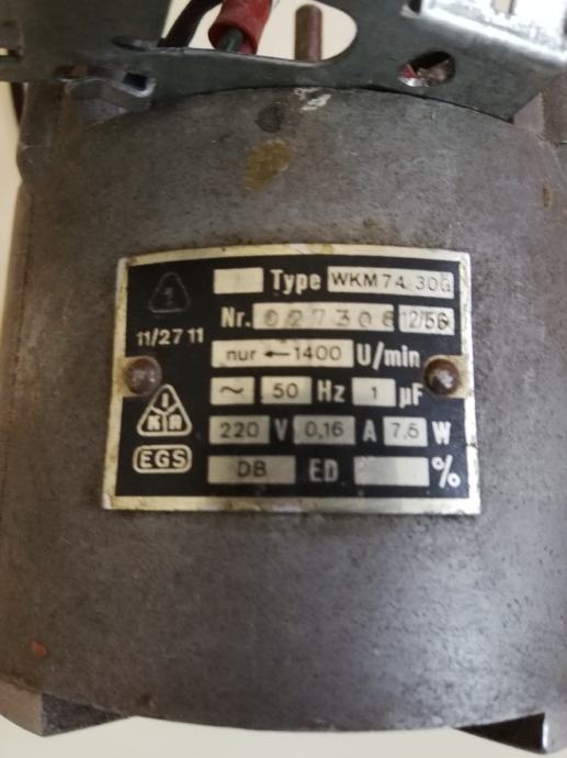 Prodajem ispravan jednofazni motor snage 7,5W, 1400okr/min, izlaz osovine je 35mm, a debljina 6mm.