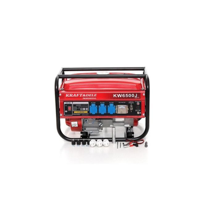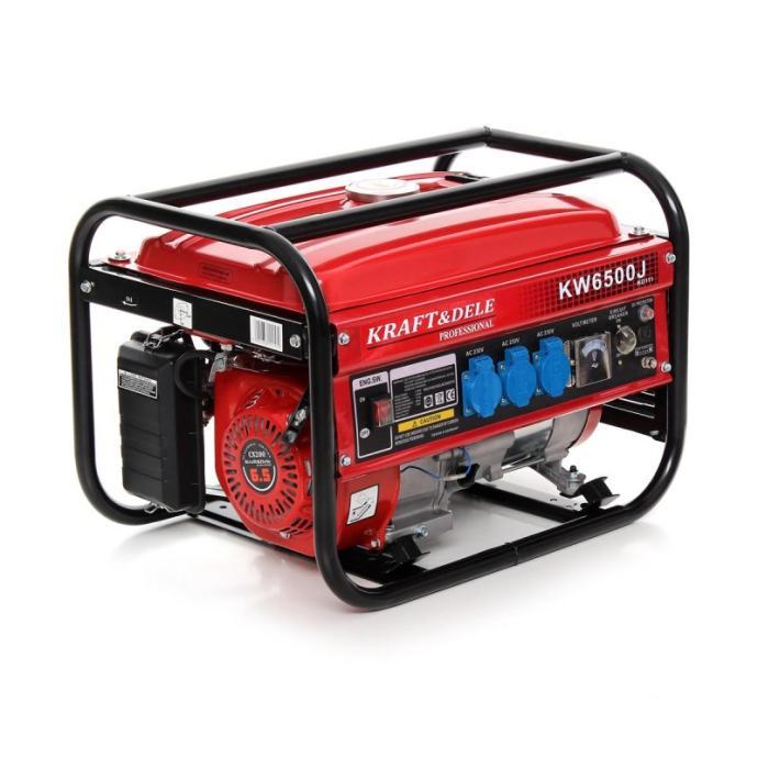 Prijenosni benzinski agregat za struju KRAFT&DELE generira 2200 W kontinuirane snage i maksimalnu snagu od 2500 W kroz snažni, robusni i čisti japanski OHV četverotaktni pogonski motor. 3 utičnice od 230 V, uključujući voltmetar koji pokazuje trenutni napon, predviđene su za pretvaranje struje u terminalnu opremu. Funkcija AVR (automatska regulacija napona) osigurava stabilnu izlaznu snagu. Spremnik od 15 litara opremljen je prikladnim indikatorom razine za kontinuirani rad, te omogućuje rad generatora do 15 sati. Generator električne energije pokreće se povlačenjem kabela.