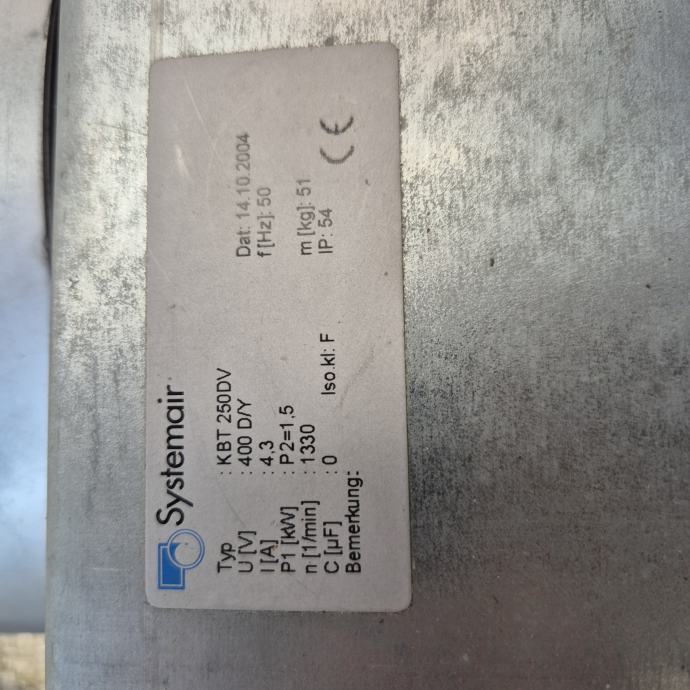 PRODAJEM POLOVNI VENTILATOR ZA VENTILACIJU ILI NAPA SYSTEMAIR, MODEL KBT 250DV, 400V.