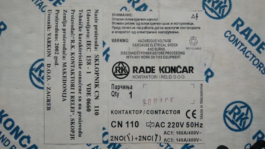 Nazivna nominalna snaga Pn, kod Un=400 V, AC 3: 55 kWh