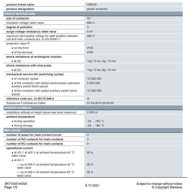 OPREZ ŠPULA 42VAC 50Hz. 3RT1035-1AD00.