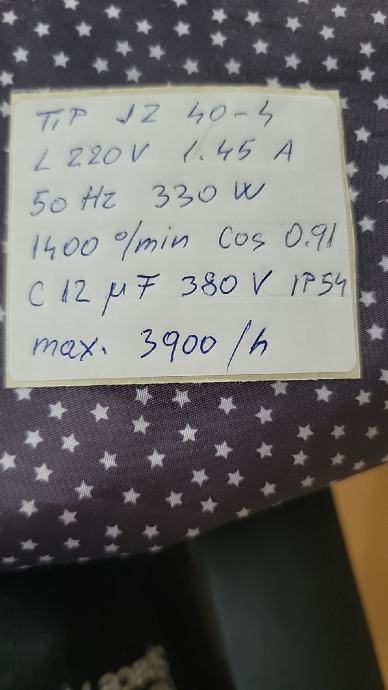 Prodajem axijalni industrijski ventilator, cijevni 220V , 330W ,1.45A , 1400 °/min , C12uF. 3900/h.