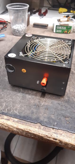 Jedna napomena: To nije prepravljen ispravljač od napajanja kompjutera! Koristi se samo lijepa kutijica...sve ostalo je ugrađeno novo i izbačena je elektronika napajanja računala! Trafo je mehanički ( od željeza i bakra) i zaista služi svrsi godinama!