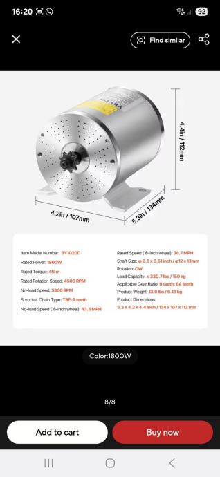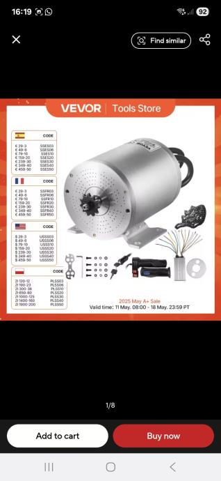 1800 W elektro motor za bicikle, tricikle, gokart, ....marke Veveor. Komplet kit + litij baterija . 48V 30Ah Cijena 300 Eura