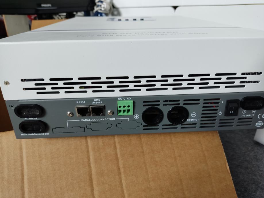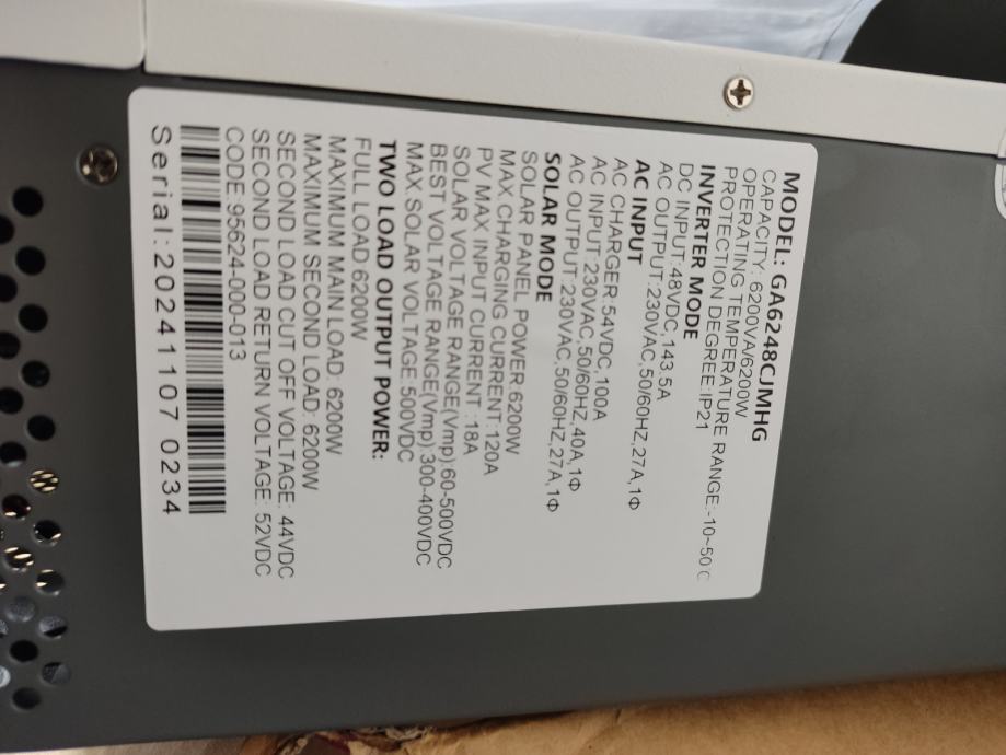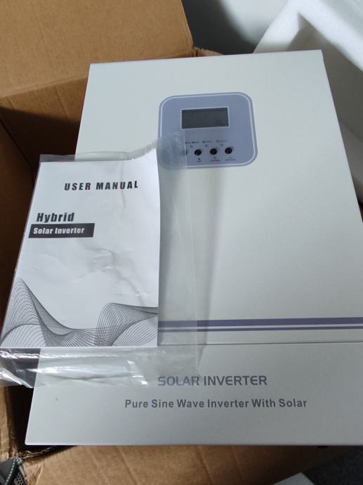 Nekorišten hibridni inverter 6,2KW / 48V 120A MPPT Max PV 500V. Prihvaća Litium baterije, a može raditi i bez baterija .