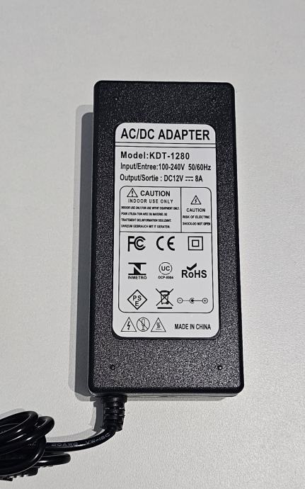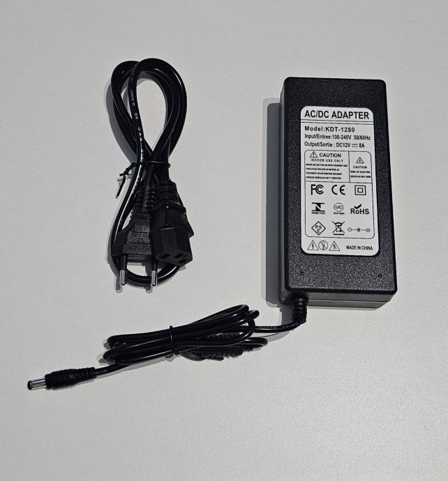 AC/DC adapter, model KDT-1280, idealan za napajanje LED traka, CCTV kamera, monitora, routera, 3D printera i drugih uređaja koji rade na 12V.