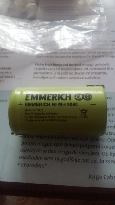 8) NiMH Emerich 1,2V/9000mAh Accu mono size D ukupno 4,8V korišten-dobar Qc: