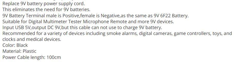 Adapter Converter kabel 1m USB2.0 na DC-9v za mjerni instrument slično