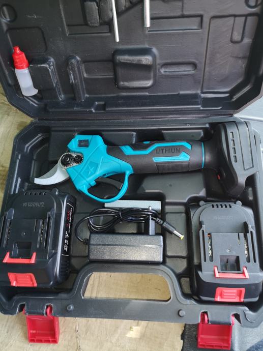 Aku škare sa dvije baterije 4,5 Ah i 3Ah, punjač, kofer i dodatci, novo, li-ion baterije, rade na Makita baterije i obrnuto, šaljem poštom, u ponudi dodatni punjači, baterije, noževi i sve ostalo za servisiranje istih, Viber, WhatsApp, pozivi
