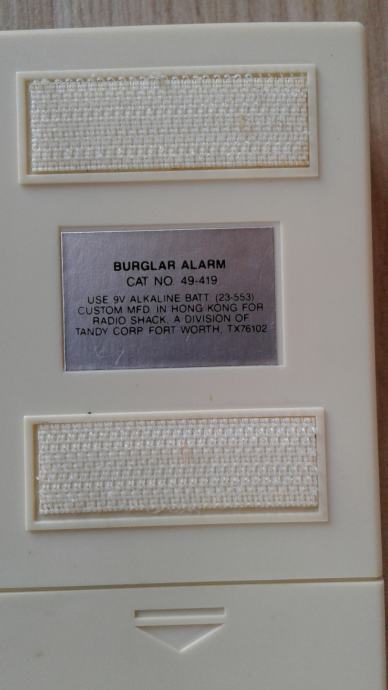 ... zvučni alarm se aktivira po trešnji pri otvaranju vrata od stana, prostorije ... Kupljeno u SAD (Radio Shack), nekorišteno ... Primopredaja Supetar, St, Zg, Tisak paketom ...