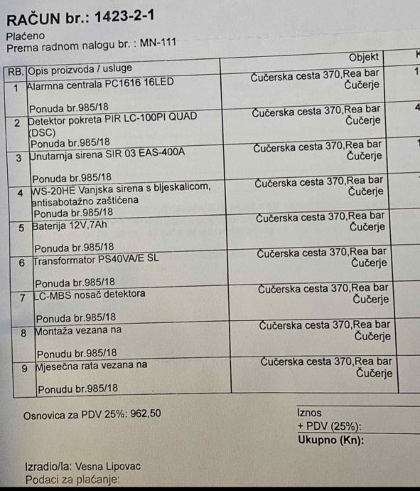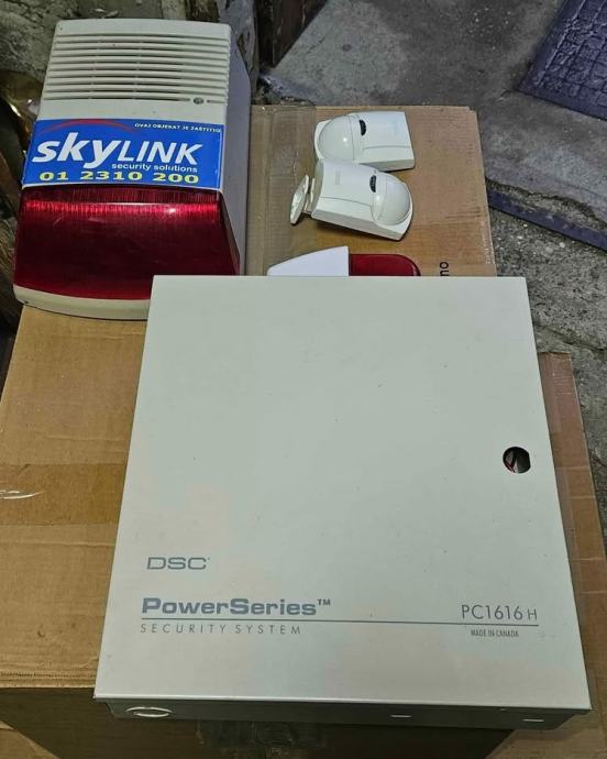 Sustav alarma komplet, alarmna centrala, unutarnja i vanjska sirena s bljeskalicom i baterijom, detektore pokreta 6 komada, transformator ...