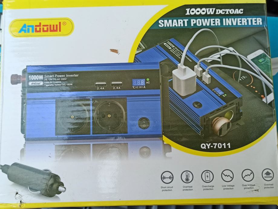 Automobilski pretvarač napajanja koji funkcionira kao produžni kabel za sve vaše uređaje s 2 Schuko utičnice, 2 automobilske utičnice i 2 USB utičnice