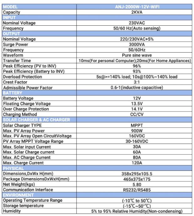 Novi nekorišten ANENJI 2KW / 12V hibridni inverter sa WiFi adapterom idealan za kamp kućice, manje brodove, vikendice sa 12V baterijom i jednom do dvije solarne ploče snage 450W.