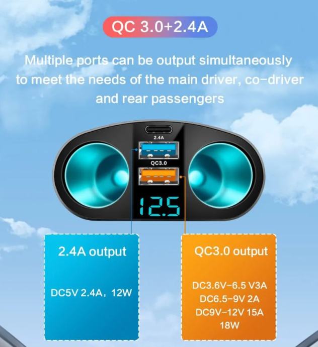 -izlaz: 2xUSB izlaz 5V 3,1A za direktno punjenje mobitela tableta gpsa ili sl,...
