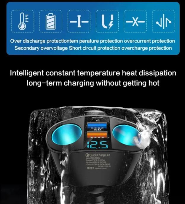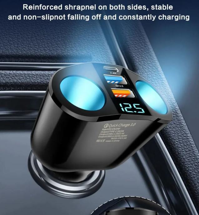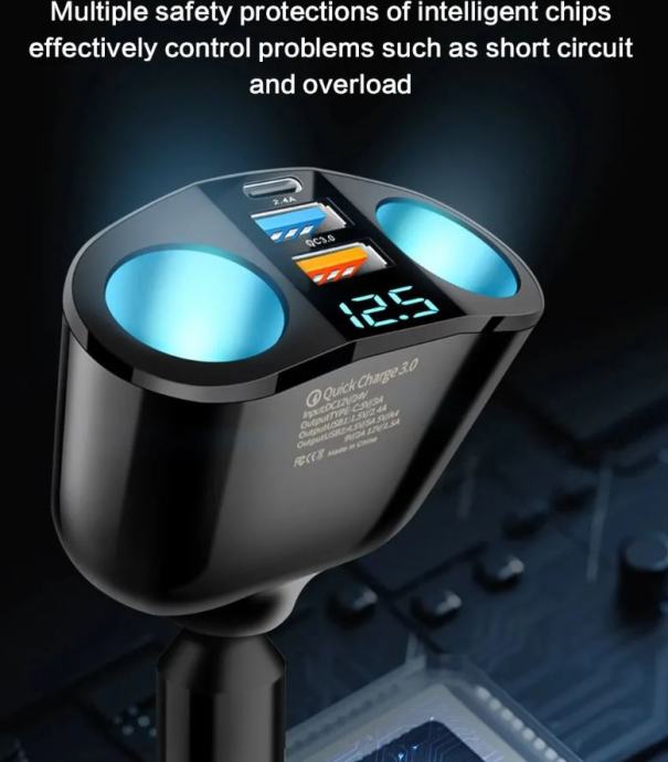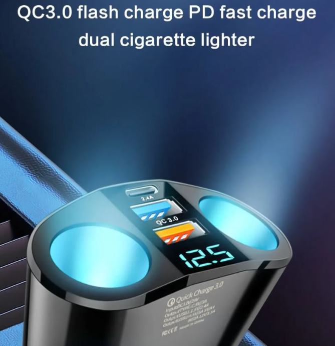 Ato utikač 2xUtičnica, razdjelnik, spliter, 2xUSB +PD LED voltmetar, upaljac, iPhone Samsung