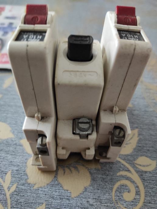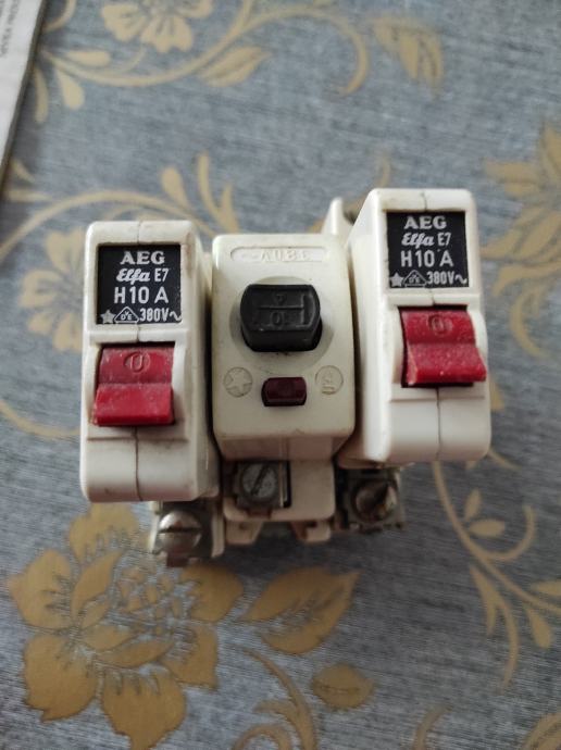 Prodajem tri polovna automatska osigurača od H10A 380V AEG, elfa E7 dva komada i jedan 10A 380V. Cijena za sve 4€.